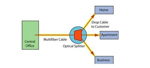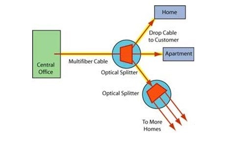 هر خانه باید با یک فیبر singlemode از طریق یک اسپلیتر نوری به دفتر مرکزی محلی متصل باشد. همچنین، هر خانه نیاز به یک فیبر singlemode دارد که با کانال زیرزمینی ارتباط داشته، یا از طریق هوایی به کابلهای زیرزمینی شرکت تلفن متصل باشد. مکان اسپلیتر میتواند دفتر مرکزی، یا پایگاهی در نزدیکی خانههای مشتریان باشد.یکی از مزایای PON پسیو بودن این پایگاه است، که برعکس سوئیچ یا نود برای اتصال فیبر نیازی به برق ندارد.