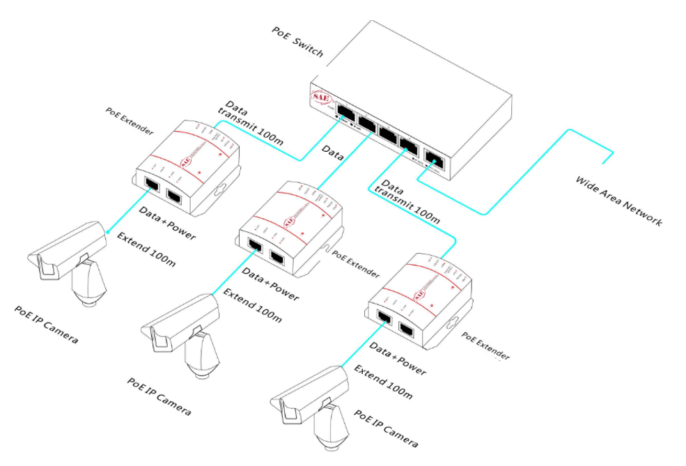 | 10/100M PoE extender | extends the data transmission from 100m to 200m |