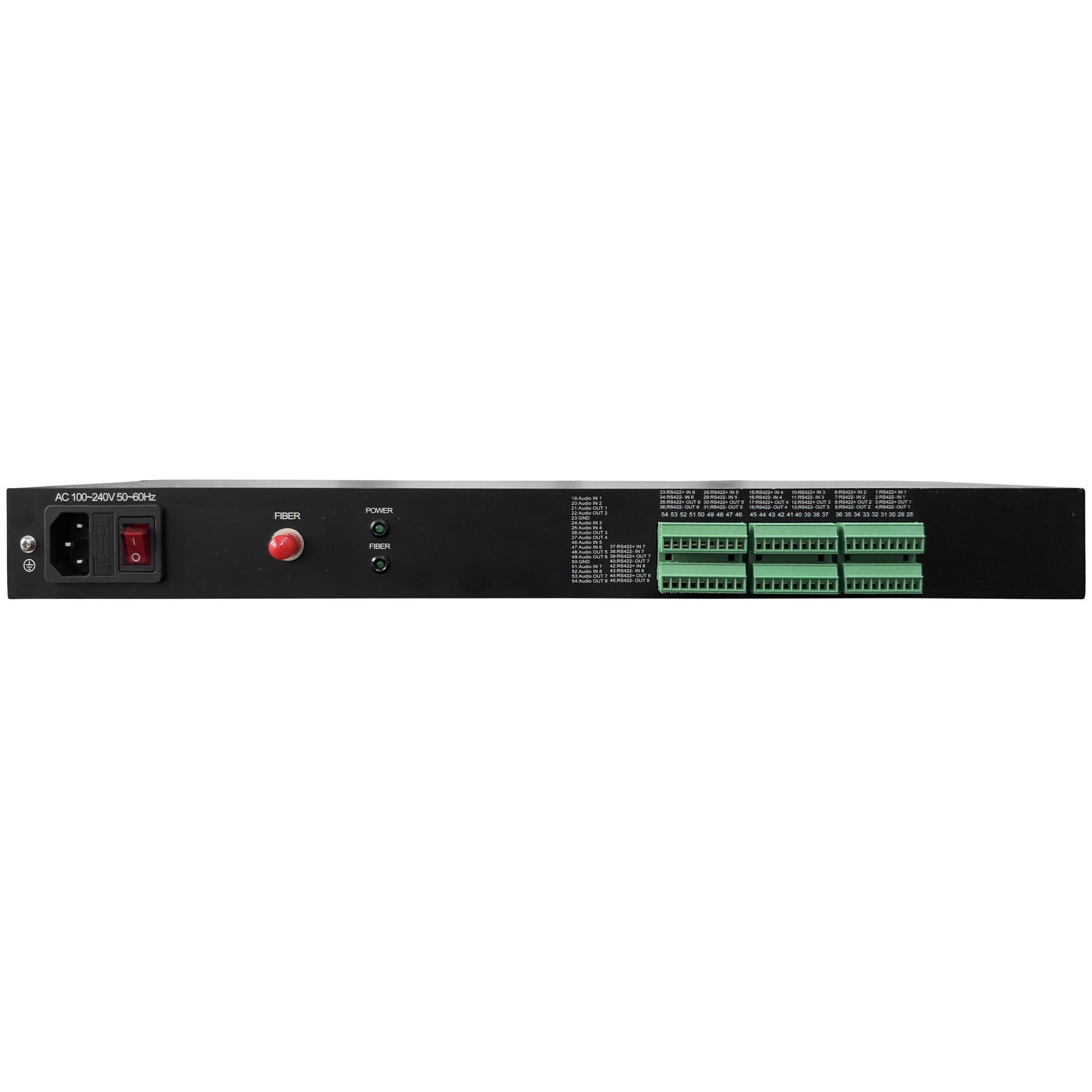 دستگاه در دو نسخهی رومیزی (Standalone) و قابل نصب در رک (Rack-Mount 2U/4U) عرضه میشود و بسته به نیاز پروژه، با رابط نوری FC یا SC قابل انتخاب است. وجود نشانگرهای LED روی پنل جلو امکان نظارت آنی بر وضعیت تغذیه، سیگنالها و ارتباط نوری را فراهم میسازد.