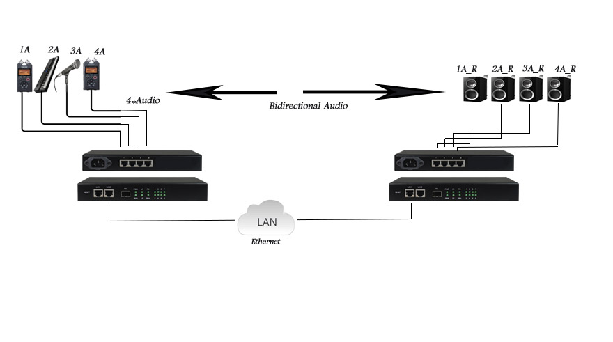 | 4 bidirectional analog Audio | 2 port 10/100Mbps RJ45 |