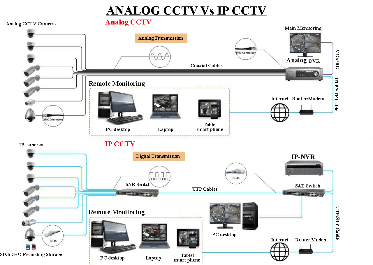 شکل1:سیستم های دوربین مداربسته آنالوگ و دیجیتال
