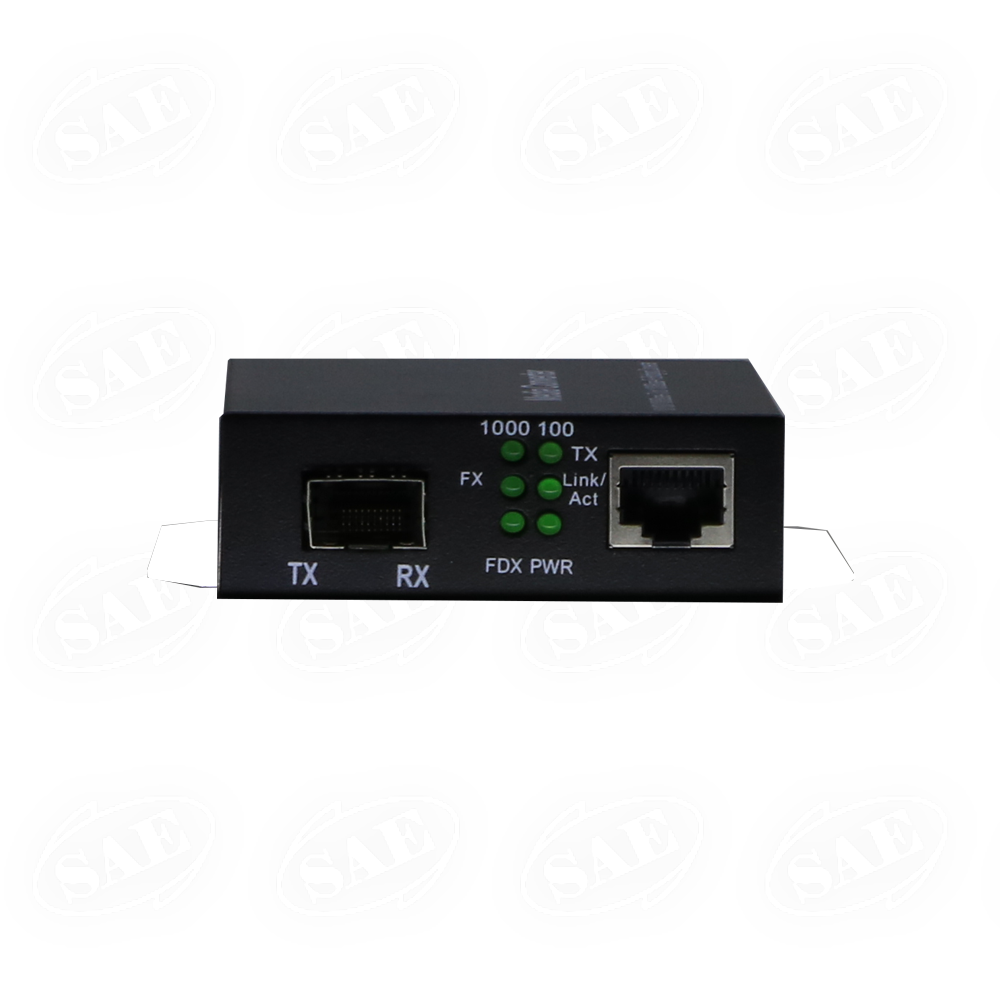 SAE-100-G20-ec | 1پورت RJ45 با سرعت 10/100/1000Mbps ، یک پورت فیبر نوری (SFP)با سرعت 1000Mbps، قابلیت انتقال بر روی فیبر نوری تا 20 کیلومتر، ولتاژ ورودی 5ولت(48 ولت به صورت سفارشی)، اکونومی همراه با گارانتی یک ساله |