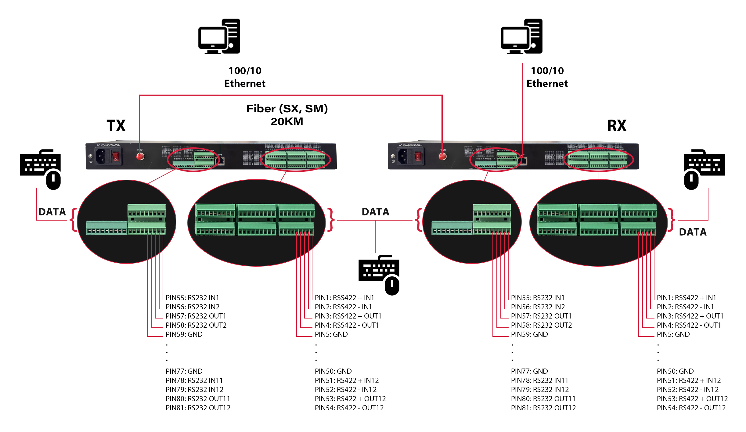 این دستگاه با هدف انتقال مطمئن، بدون نویز و در فواصل طولانی طراحی شده و امکان ارسال همزمان دادههای سریال و ترافیک شبکه را تا فاصله ۲۰ کیلومتر (بسته به نوع ماژول نوری) فراهم میسازد. عملکرد کاملاً شفاف نسبت به پروتکلها، سبب میشود بدون نیاز به تنظیمات خاص یا تغییر در تجهیزات موجود، بتوان آن را به انواع سیستمهای موجود متصل نمود.
