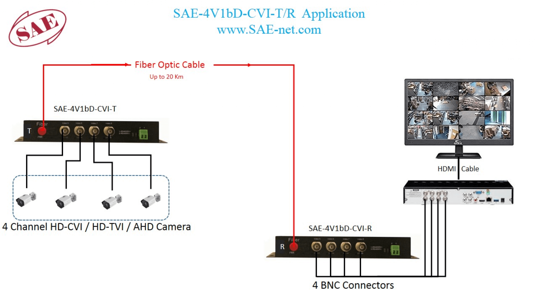 این محصول برای استفاده وسیع در حوزههای CCTV، حفاظت تصویری و امنیت ملی طراحی و ساخته شده است. همچنین LEDهای نشان دهنده وضعیت SAE-4V1bD-CVI-T_R کنترل بی مورد از مرکز کنترل را حذف نموده است. سری محصولات مبدل ویدئو آنالوگ در دو نوع استند الون و رک مونت در هنگام سفارش تعیین و تولید می شود.