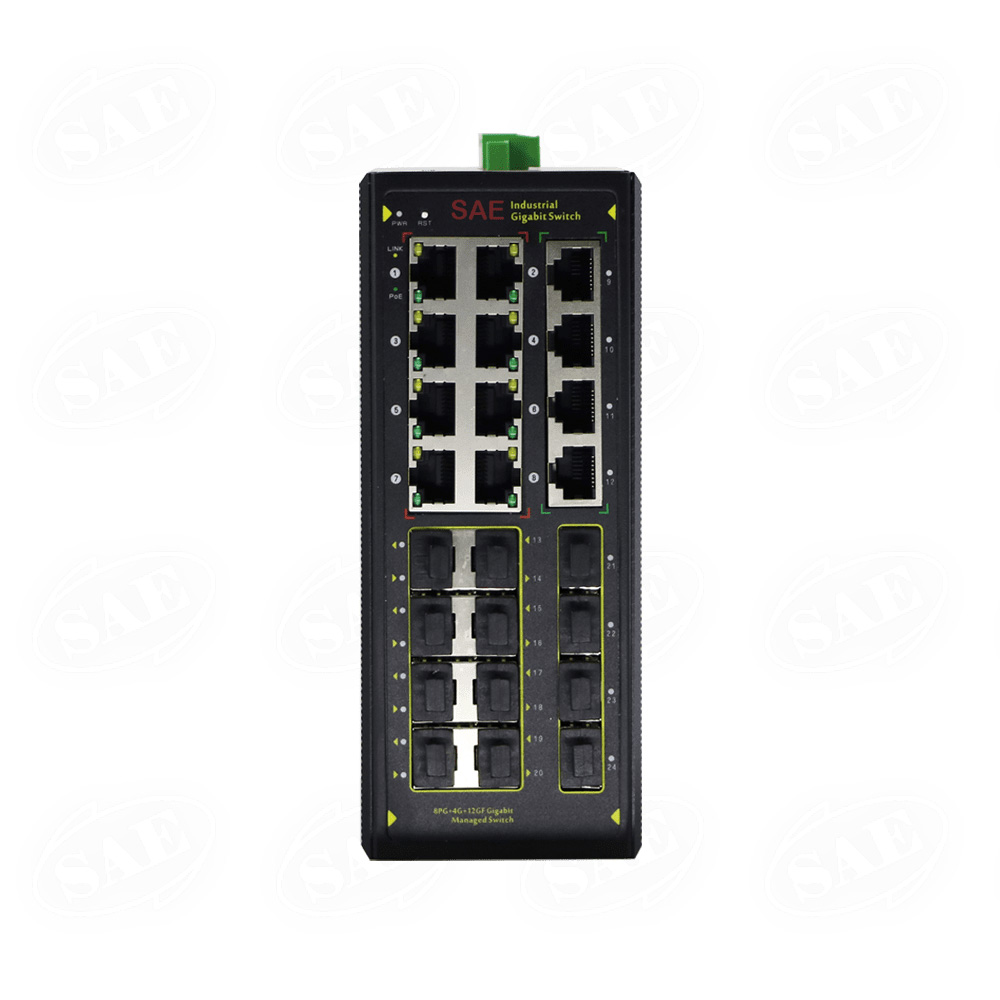 سوییچ صنعتی مدیریتی هوشمند ساختار اسپادانا SAE-IFS12000-TWSM دارای 12 پورت RJ45 با سرعت10/100/1000Mbps و 12 پورت آپ لینک فیبرنوری با نرخ انتقال اطلاعات 1000M تشکیل شده است. این محصول ترکیبی ایدهآل و قدرتمند مجهز به آخرین تکنولوژی های موجود است که امکان ارتباط میان آپ لینک های فیبر با پورت های سرور و همچنین سایر تجهیزات فیبر نوری را فراهم میسازد و از لحاظ توانایی برای شبکههای سطح ورودی محصول جهت استفاده حرفهای در شبکههای صنعتی، تلفنهای IP، دوربینهای IP و کاربردهای بیسیم در محیطهای صنعتی طراحی و تولید شده است. طراحی بهینه و بدون فن این سوئیچ منجر به مصرف کمتر انرژی در این محصول شده است. این رینگ سوئیچ صنعتی از امکانات Looped Network Redundancy, broadcast storm suppression and flow control پشتیبانی می کند. همچنین این محصول از طریق وب، CLI و SNMP مدیریت می شود. از ویژگیهای لایه 2 در این سوییچ می توان به 802.1Q VLAN, IGMP Snooping, LLDP , IP Protection،، QoS، ACL اشاره کرد. سوییچ SAE-IFS12000-TWSM با بکارگیری المانهای با کیفیت بالا در تولید، دارای عملکرد برتر در شرایط محیطی سخت و ناپایدار است. طراحی الکترونیکی این محصول با هدف مقابله حداکثری با اثرات خوردگی و تداخلهای الکترومغناطیسی صورت گرفته است. همچنین در طراحیهای کلی این محصول توجه به سازگاری با محیط زیست بیش از پیش بوده است.