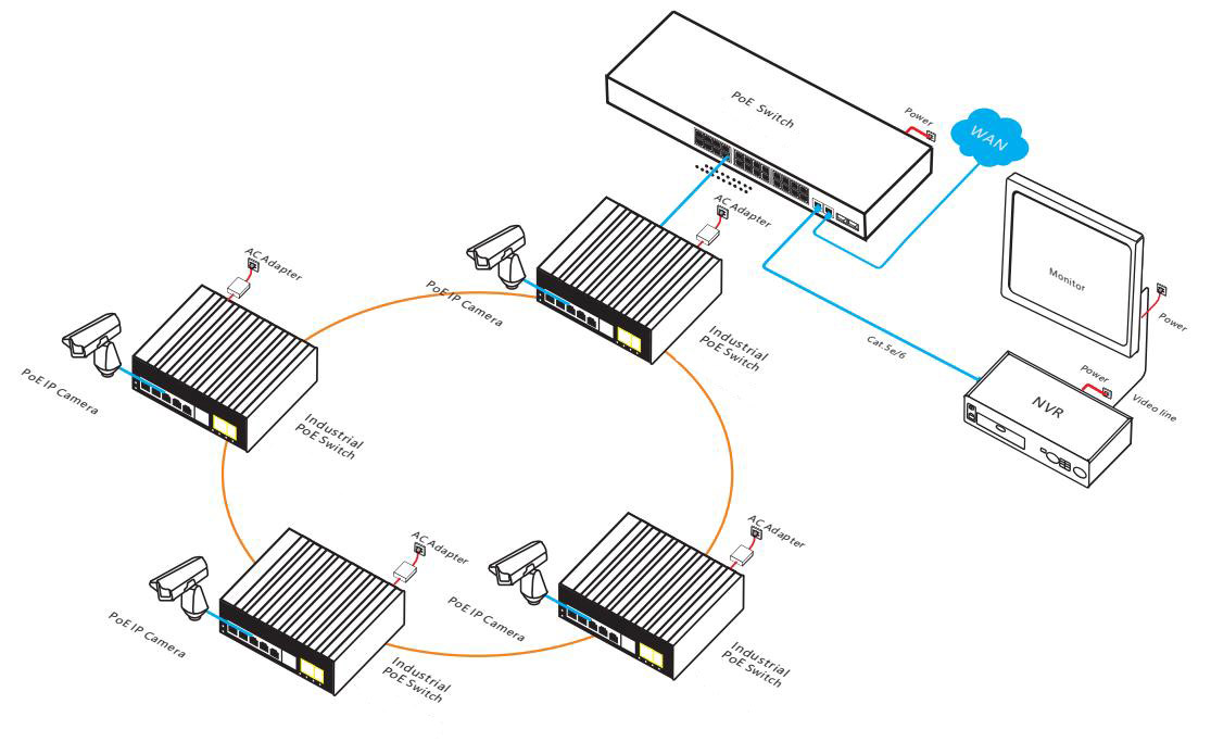 PoE سوییچ صنعتی مدیریتی هوشمند ساختار اسپادانا SAE-IPE4600F-DGFIM توانایی انتقال توان به همراه دیتا در محیطهای صنعتی از طریق یک کابل شبکه را داراست. این سوئیچ از4 پورت RJ45 با سرعت10/100/1000Mbps و دو پورت آپ لینک فیبر نوری LC گیگابیتی تشکیل شده است که قابلیت انتقال توان با استاندارد صنعتی IEEE 802.3af و IEEE802.3at را برای هر دستگاه PoE استاندارد دارد. این محصول جهت استفاده حرفهای در شبکههای صنعتی، تلفنهای IP، دوربینهای IP و کاربردهای بیسیم در محیطهای صنعتی طراحی و تولید شده است. محصول SAE-IPE4600F-DGFIMبا بکارگیری الگوریتم پیشرفته سنجش خودکار دستگاه های اتصالی (advanced auto-sensing)، توان را بصورت خودکار توسط کابل شبکه تنها به دستگاههایی که استاندارد صنعتی IEEE 802.3af را پشتیبانی میکنند، تحویل میدهد. این مزیت میتواند اتصال دستگاههای غیر PoE به این محصول را بدون مشکل پشتیانی کند.