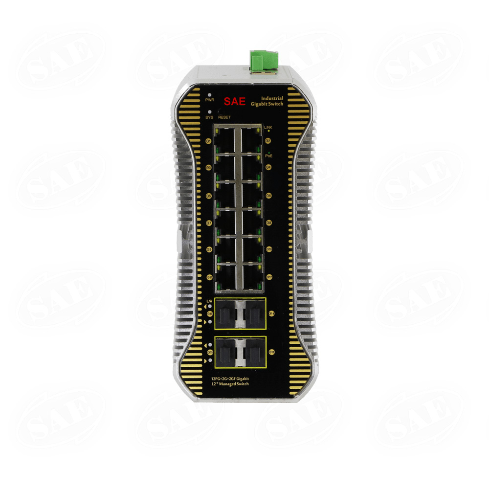 سوییچ صنعتی مدیریتی هوشمند ساختار اسپادانا SAE-ISW12000-QTGSM دارای 12 پورت RJ45 با سرعت10/100/1000Mbps و 4 پورت آپ لینک فیبرنوری با نرخ انتقال اطلاعات 1000M تشکیل شده است. این محصول ترکیبی ایدهآل و قدرتمند مجهز به آخرین تکنولوژی های موجود است که امکان ارتباط میان آپ لینک های فیبر با پورت های سرور و همچنین سایر تجهیزات فیبر نوری را فراهم میسازد و از لحاظ توانایی برای شبکههای سطح ورودی محصول جهت استفاده حرفهای در شبکههای صنعتی، تلفنهای IP، دوربینهای IP و کاربردهای بیسیم در محیطهای صنعتی طراحی و تولید شده است. طراحی بهینه و بدون فن این سوئیچ منجر به مصرف کمتر انرژی در این محصول شده است. این رینگ سوئیچ صنعتی از امکانات Looped Network Redundancy, broadcast storm suppression and flow control پشتیبانی می کند. همچنین این محصول از طریق وب، CLI و SNMP مدیریت می شود. از ویژگیهای لایه 2 در این سوییچ می توان به 802.1Q VLAN, IGMP Snooping, LLDP , IP Protection،، QoS، ACL اشاره کرد. سوییچ SAE-ISW12000-QTGSM با بکارگیری المانهای با کیفیت بالا در تولید، دارای عملکرد برتر در شرایط محیطی سخت و ناپایدار است. طراحی الکترونیکی این محصول با هدف مقابله حداکثری با اثرات خوردگی و تداخلهای الکترومغناطیسی صورت گرفته است. همچنین در طراحیهای کلی این محصول توجه به سازگاری با محیط زیست بیش از پیش بوده است.